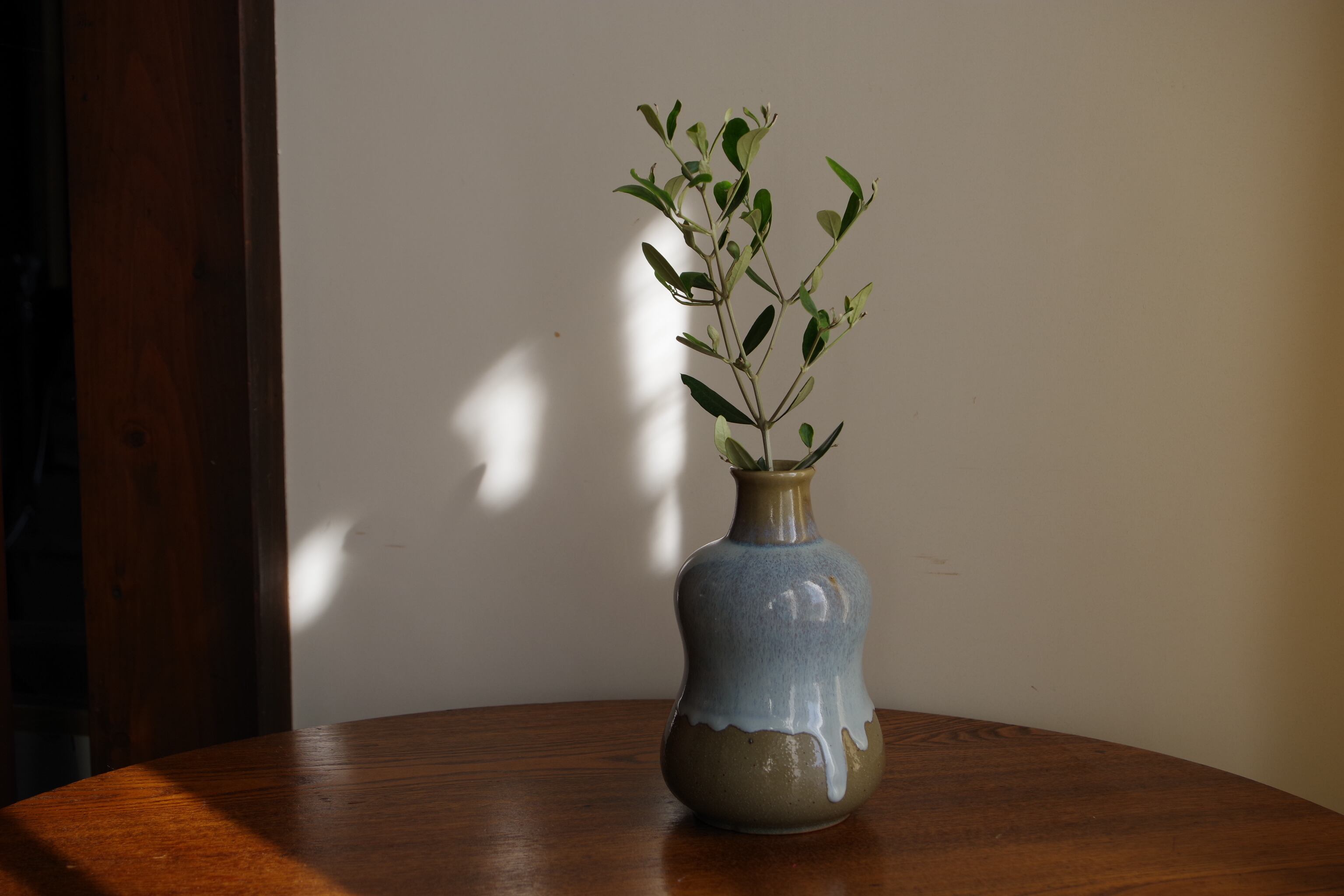 灰青釉が涼しげで落ち着いた印象の花瓶です。